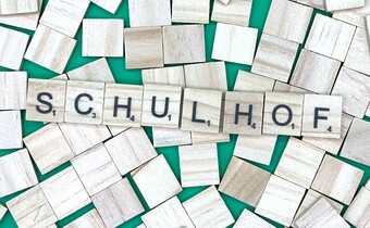 Aus Buchstaben wurde der Begriff „Schulhof" gelegt. Es gelten die Nutzungsbedingungen der Mediothek und Pixiothek.