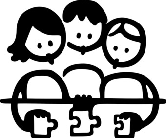 Die Zeichnung zeigt eine symbolhafte Szene zur Darstellung von Gruppenarbeit. Das Bild ist unter CC0 lizenziert und kann somit frei verwendet werden. Es ist neben weiteren Bildern auch hier zu finden: https://cocomaterial.com