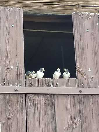 Junge Rauchschwalben nach der Fütterung