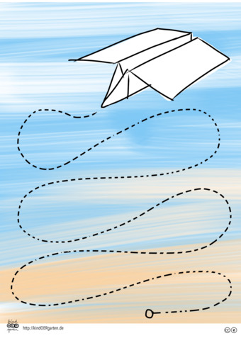 Das Bild zeigt einen Papierflieger bzw. gefalteten Flieger aus Papier (farbig) und kann als Schwungübung für Kinder im Kindergarten bzw. Elementarbereich dienen. Das Bild ist unter CC0 lizenziert und kann somit frei verwendet werden. Es ist neben weiteren Bildern auch hier zu finden: https://kindoergarten.wordpress.com/