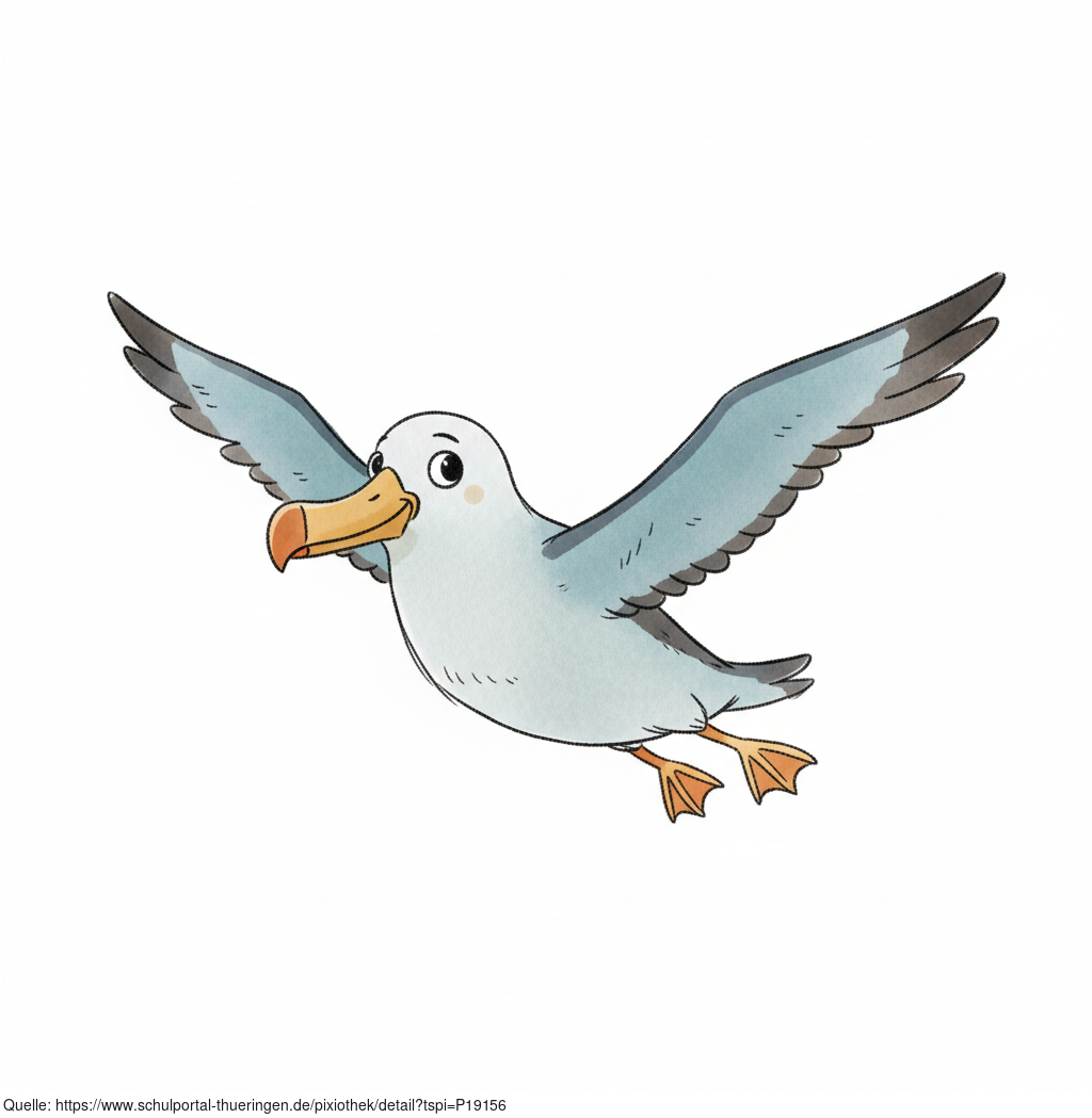 Das Bild zeigt einen gezeichneten Albatros. Das Bild wurde mittels einer KI (Gemini) erstellt und ist unter CC0 lizenziert. Weitere Bilder aus Herrn Emrich-Försters Bild-Archiv findet man hier: https://pix.foerster.rocks/