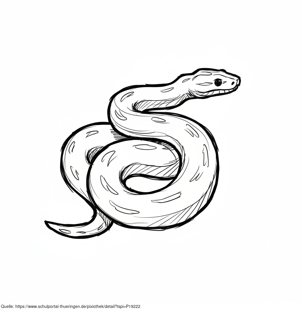 Das Bild zeigt eine gezeichnete Anakonda. Das Bild wurde mittels einer KI (Gemini) erstellt und ist unter CC0 lizenziert. Weitere Bilder aus Herrn Emrich-Försters Bild-Archiv findet man hier: https://pix.foerster.rocks/