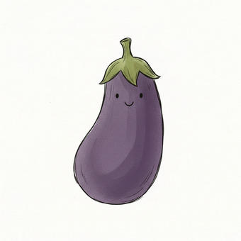 Das Bild zeigt eine gezeichnete Aubergine. Das Bild wurde mittels einer KI (Gemini) erstellt und ist unter CC0 lizenziert. Weitere Bilder aus Herrn Emrich-Försters Bild-Archiv findet man hier: https://pix.foerster.rocks/