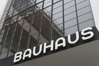 Bauhausgebäude in Dessau: Schriftzug "BAUHAUS" im Eingangsbereich