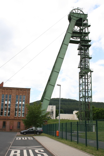 Das Foto gehört zur Serie "Salzbergwerk". Es zeigt den Förderturm im Erlebnisbergwerk Merkers. Es gelten die Nutzungsbedingungen der Mediothek und Pixiothek.