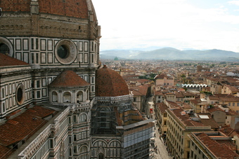 Das Foto gehört zur Serie "Florenz". Es zeigt eine Stadtansicht und links einen Teil vom Dom bzw. der Kathedrale Santa Maria del Fiore. Es gelten die Nutzungsbedingungen der Mediothek und Pixiothek.