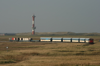 Wangerooge: Inselbahn mit Leuchtturm