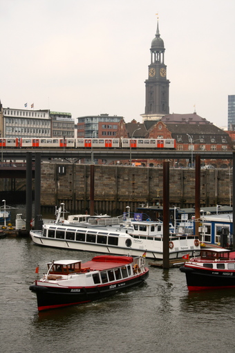 Das Foto gehört zur Serie "Hansestadt Hamburg". Es zeigt den Binnenhafen und im Hintergrund die Hauptkirche St. Michaelis, im Volksmund "Michel" genannt. Es gelten die Nutzungsbedingungen der Mediothek und Pixiothek.