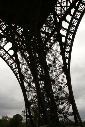 Das Foto gehört zur Serie Paris. Es zeigt eine der vier Stützpfeiler des Eiffelturms aus Eisenfachwerk, die jeweils 26 m breit sind. Darüber beginnt in rund 58 m Höhe die erste Etage des Turmes. Es gelten die Nutzungsbedingungen der Mediothek und Pixiothek.