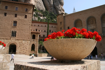 Die Bildersammlung enthält ausgewählte Fotografien vom Kloster Santa Maria de Montserrat, nordwestlich von Barcelona. Zu sehen ist eine Aufnahme von vor dem Kloster.