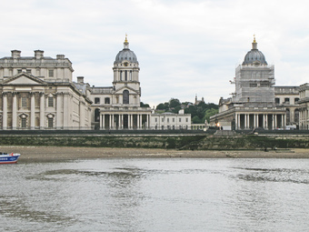 Das Foto gehört zur Serie London 2016. Es zeigt "The Old Royal Naval College" (Maritime Greenwich Campus), Teil der University of Greenwich. Turm links: Chapel of Sts. Peter and Paul, Turm rechts: The Painted Hall. Es gelten die Nutzungsbedingungen der Mediothek und Pixiothek.