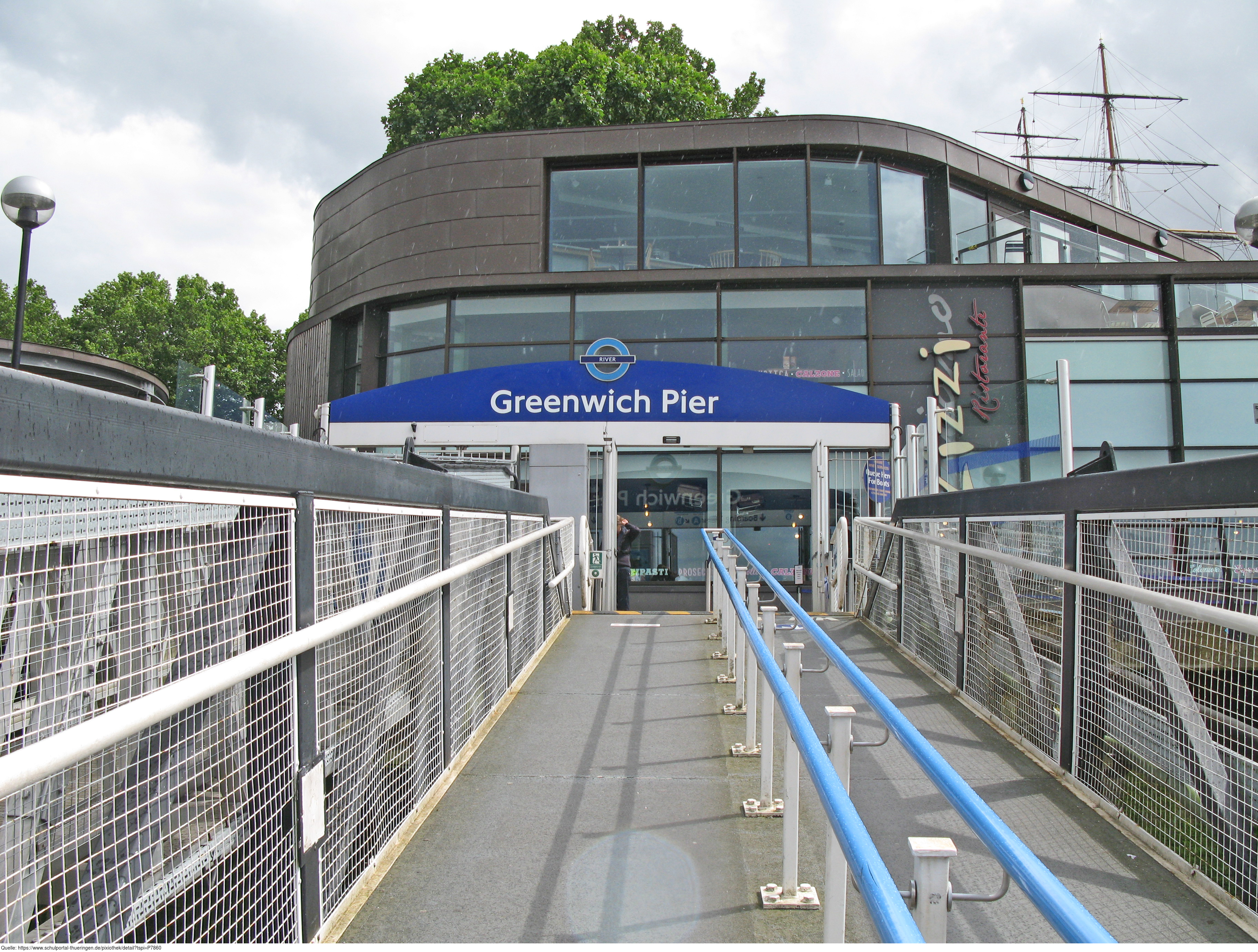 Das Foto gehört zur Serie London 2016. Es zeigt das Fährterminal "Greenwich Pier". Es gelten die Nutzungsbedingungen der Mediothek und Pixiothek.