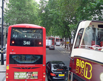 Das Foto gehört zur Serie London 2016. Es zeigt Straßenverkehr (traffic) in London. Es gelten die Nutzungsbedingungen der Mediothek und Pixiothek.