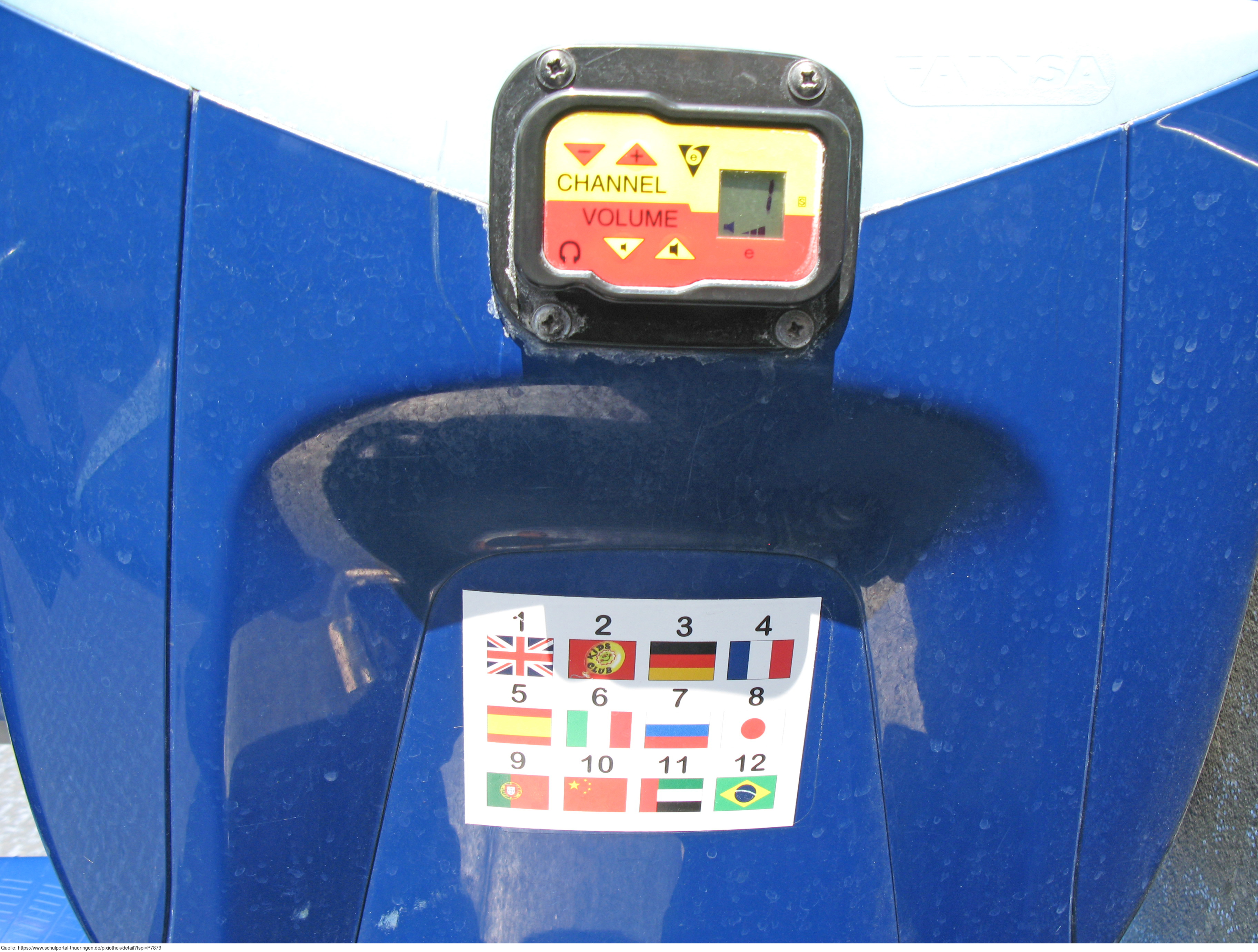 Das Foto gehört zur Serie London 2016. Es zeigt den Anschluss für Kopfhörer in einem Doppeldeckerbus für Stadtrundfahrten in London. Kopfhörer werden im Bus bereitgestellt. Die Sprache für den AudioGuide kann mit Tastendruck eingestellt werden. Es gelten die Nutzungsbedingungen der Mediothek und Pixiothek.