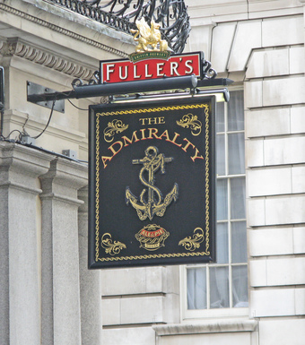 Das Foto gehört zur Serie London 2016. Es zeigt das Schild des Restaurants "The Admirality" unweit vom Trafalgar Square. Es gelten die Nutzungsbedingungen der Mediothek und Pixiothek.