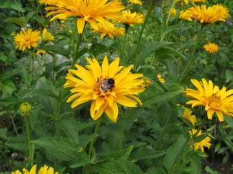 Das Foto gehört zur Serie Blumen im Garten. Es zeigt eine Ringelblume (Calendula). Sie ist einjährig und wächst am besten in Gruppen. Die Ringelblume ist nicht winterhart, wächst aber im Folgejahr durch ihren winterharten Samen von selbst wieder. Calendula officinalis war die Heilpflanze des Jahres 2009. Hier sucht eine Erdhummel nach Nektar. Es gelten die Nutzungsbedingungen der Mediothek und Pixiothek.
