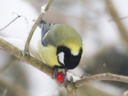 Das Foto gehört zur Serie "Vögel im Winter". Es zeigt eine Kohlmeise an der Futterspirale. Es gelten die Nutzungsbedingungen der Mediothek und Pixiothek.