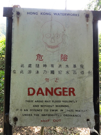 Das Foto gehört zur Serie "Hong Kong Trail". Es zeigt ein Warnschild vor giftigen Fischen, Schlangen und Spinnen in diesem tropischen Gebiet. Es gelten die Nutzungsbedingungen der Mediothek und Pixiothek.