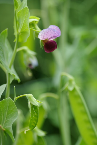 Das Bild gehört zur Serie "Blüten von Gemüsepflanzen". Es zeigt Erbsenblüten und im Hintergrund Erbsenschoten. Das Bild ist unter CC0 lizenziert und kann somit frei verwendet werden.