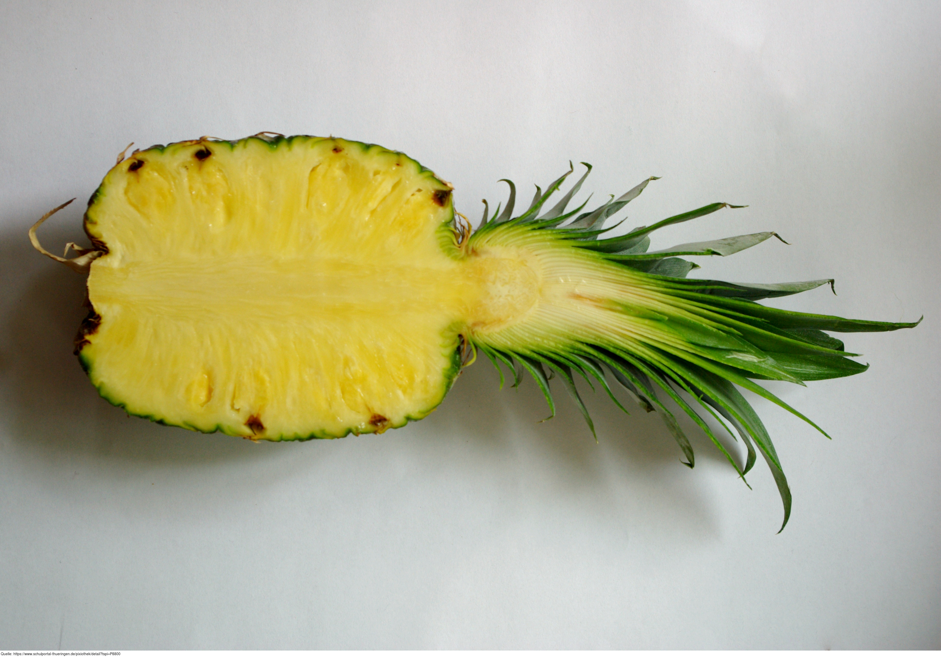 Das Foto gehört zur Serie "Obst". Es zeigt eine halbierte Ananas. Das Bild ist unter CC0 lizenziert und kann somit frei verwendet werden.