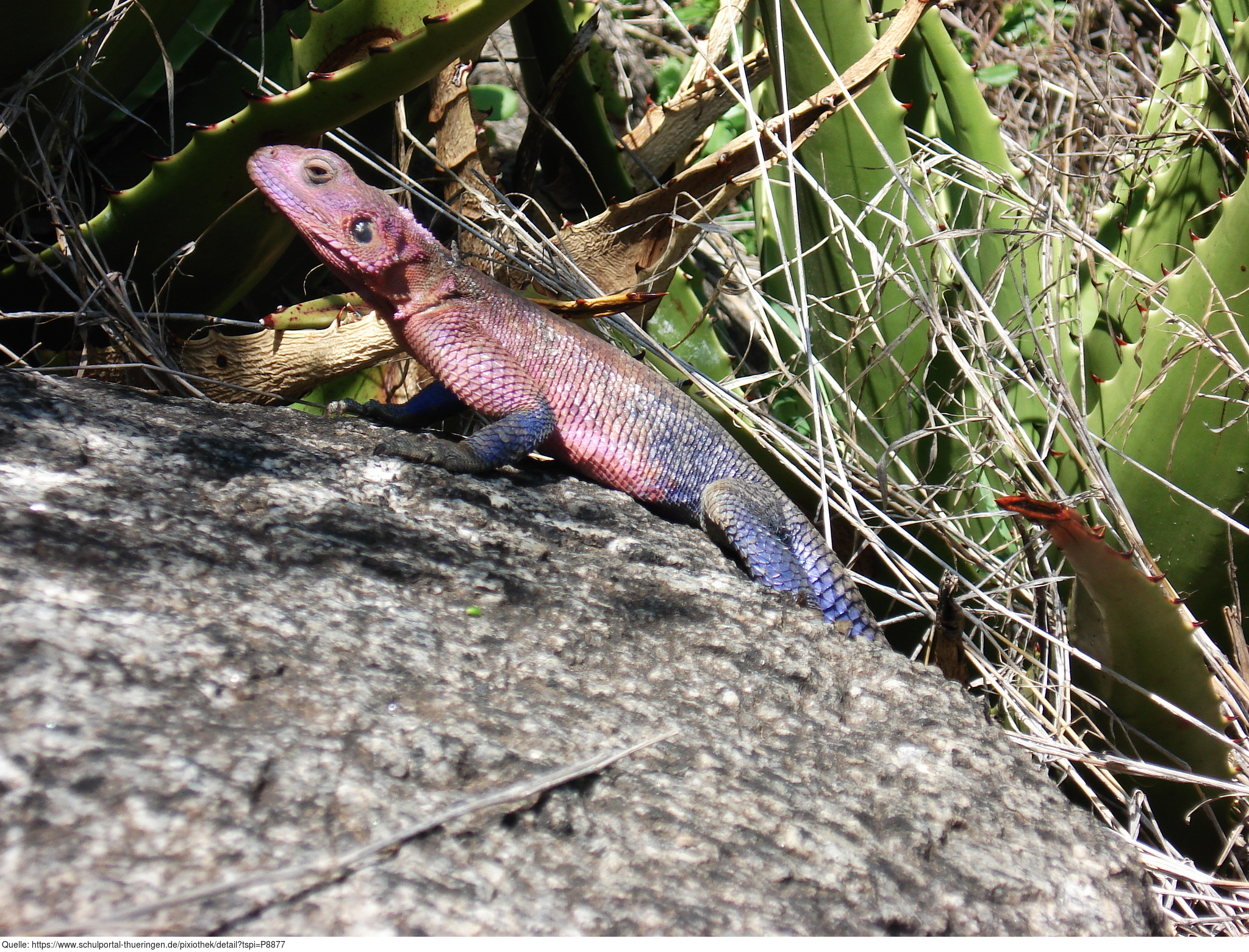 Das Bild wurde in Tansania aufgenommen. Es zeigt eine stahlblaue Felsenagame (Agama mwanzae). Agamen bilden eine Familie innerhalb der Schuppenkriechtiere. Es gelten die Nutzungsbedingungen der Mediothek und Pixiothek.