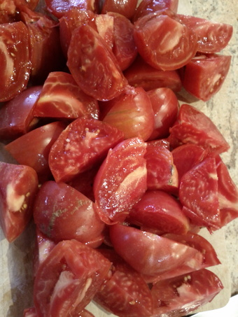 Das Foto gehört zur Serie "Gemüse". Es zeigt stückige Tomaten. Das Bild ist unter CC0 lizenziert und kann somit frei verwendet werden.