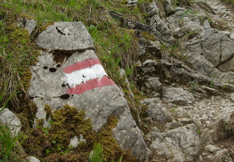 Das Bild gehört zur Serie "Alpen". Es zeigt eine Wanderwegmarkierung des Alpenvereins. Das Bild ist unter CC0 lizenziert und kann somit frei verwendet werden.
