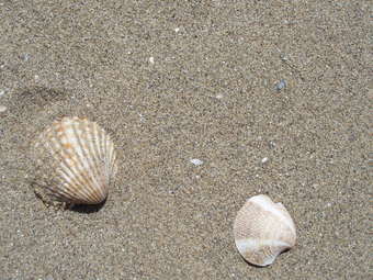 Das Bild gehört zur Serie "Strand". Es zeigt Sand mit Muscheln am Strand. Das Bild ist unter CC0 lizenziert und kann somit frei verwendet werden.