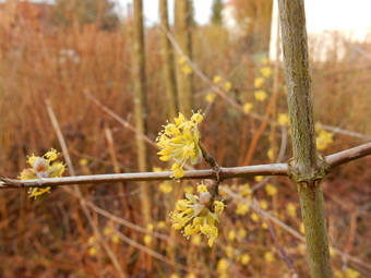 Das Foto gehört zur Serie "Laubbäume". Es zeigt eine blühende Kornelkirsche (Cornus mas), auch Herlitze, Dürlitze, Hirlnuss genannt. Das Bild ist unter CC0 lizenziert und kann somit frei verwendet werden.