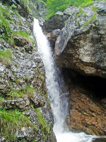 Das Foto gehört zur Serie "Alpen". Es zeigt einen Wasserfall in den Alpen. Das Bild ist unter CC0 lizenziert und kann somit frei verwendet werden.