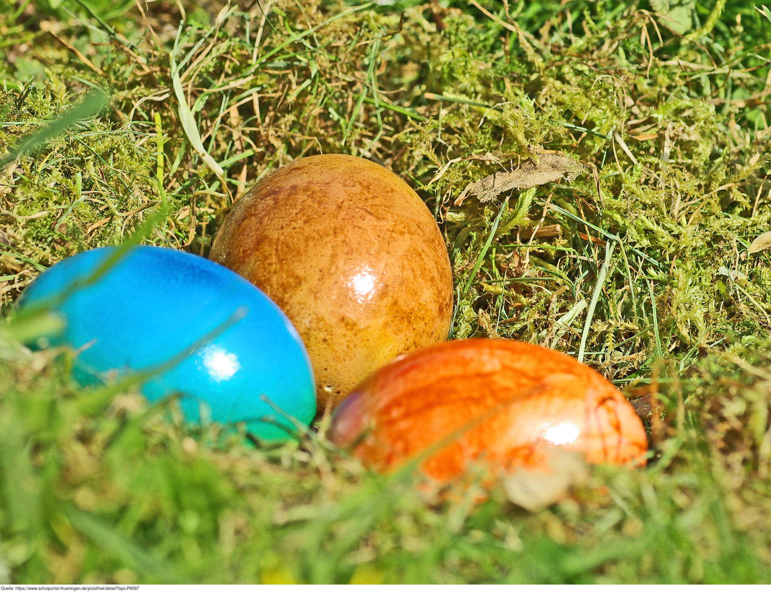 Das Foto gehört zur Serie "Ostern". Es zeigt Ostereier auf dem Rasen. Das Bild ist unter CC0 lizenziert und kann somit frei verwendet werden.