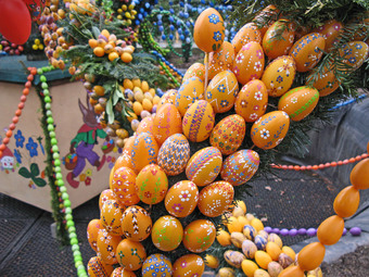 Das Foto gehört zur Serie "Ostern". Es zeigt die Osterkrone in Berga/Elster. 2015 bestand diese Dekoration aus über 15000 bemalten Eiern. Das Bild ist unter CC0 lizenziert und kann somit frei verwendet werden.