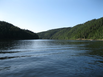 Das Bild gehört zur Serie "Saalekaskade". Es zeigt ein Motiv des Hohenwarte-Stausees. Es gelten die Nutzungsbedingungen der Mediothek und Pixiothek.