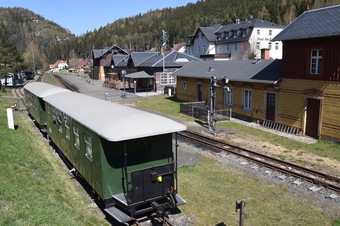 Das Bild gehört zur Serie „Zittauer Schmalspurbahn“. Die in der Oberlausitz verkehrende Schmalspurbahn besitzt eine Spurweite von 750 mm. Die Strecke verläuft von Zittau über Bertsdorf entweder nach Kurort Oybin oder Kurort Jonsdorf im Zittauer Gebirge. Eigentümer und Betreiber ist seit 1996 nach der Übernahme von der Deutschen Bahn die Sächsisch-Oberlausitzer Eisenbahngesellschaft. Die Strecke wurde 1890 in Betrieb genommen. Es gelten die Nutzungsbedingungen der Mediothek und Pixiothek.