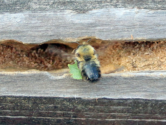 Das Foto gehört zur Serie "Bienen". Es zeigt eine Blattschneiderbiene (Megachile), auch Tapezierbiene genannt. Blattschneiderbienen bauen ihr Nest in Hohlräume, zum Beispiel Totholz, und tapezieren diese mit abgeschnittenen Blattstücken aus. Es gelten die Nutzungsbedingungen der Mediothek und Pixiothek.
