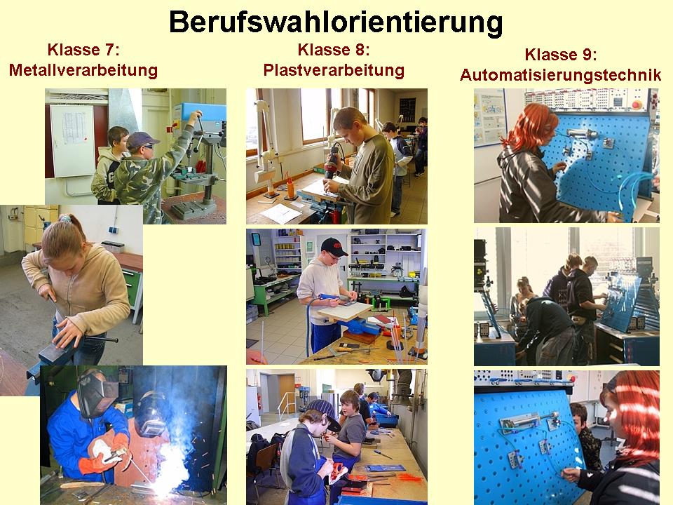 Berufsorientierung-1 (Klasse 7. Metalltechnik, Klasse 8: Plastverarbeitung, Klasse 9: Automatisierungstechnik)