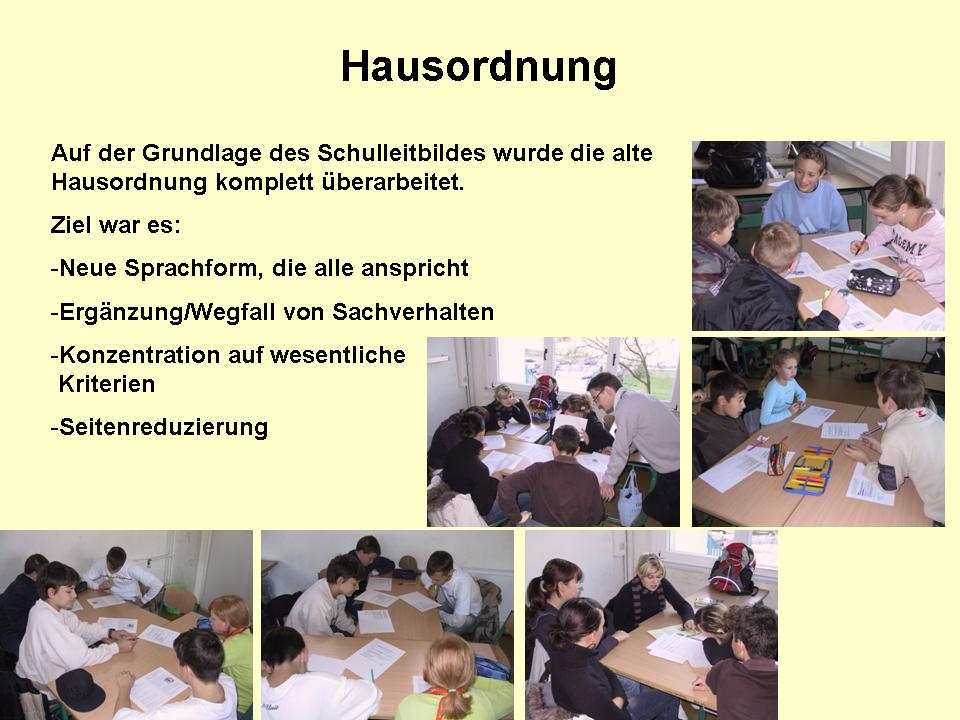 Hausordnung: die Überarbeitung der Hausordnung auf der Grundlage unseres Schulleitbildes