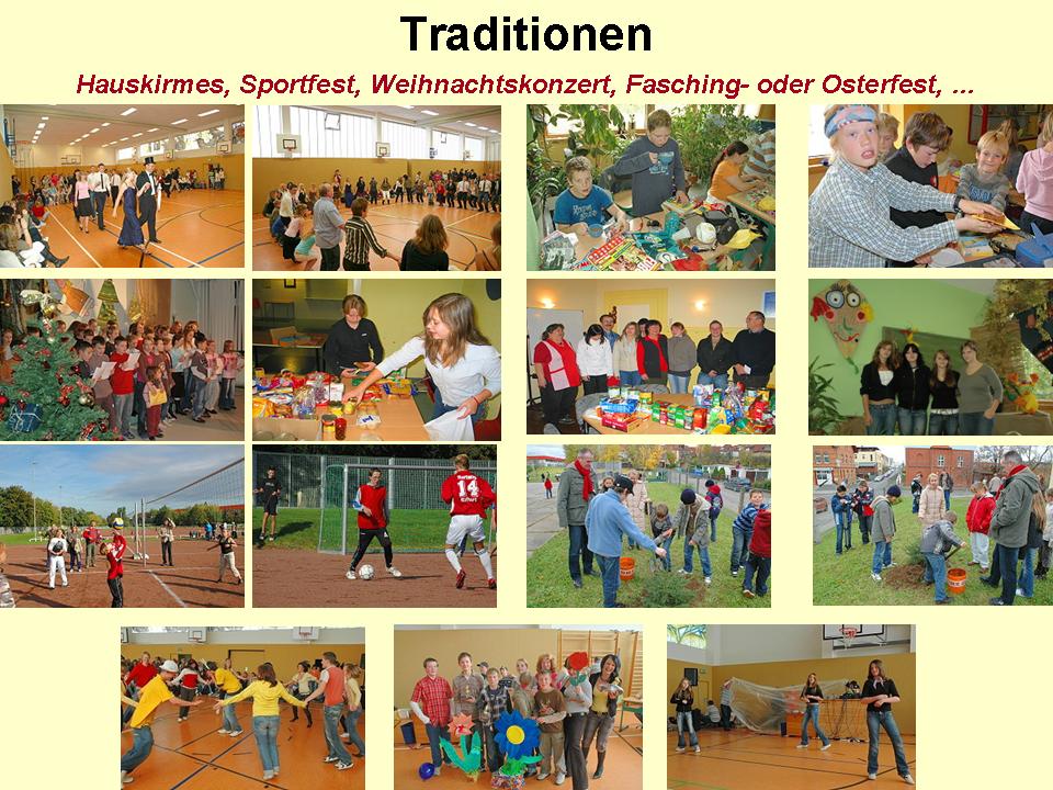 Traditionen: unser vielfältiges Schulleben (Sportfest, Hauskirmes, Osterfest, Projektwoche, ...)